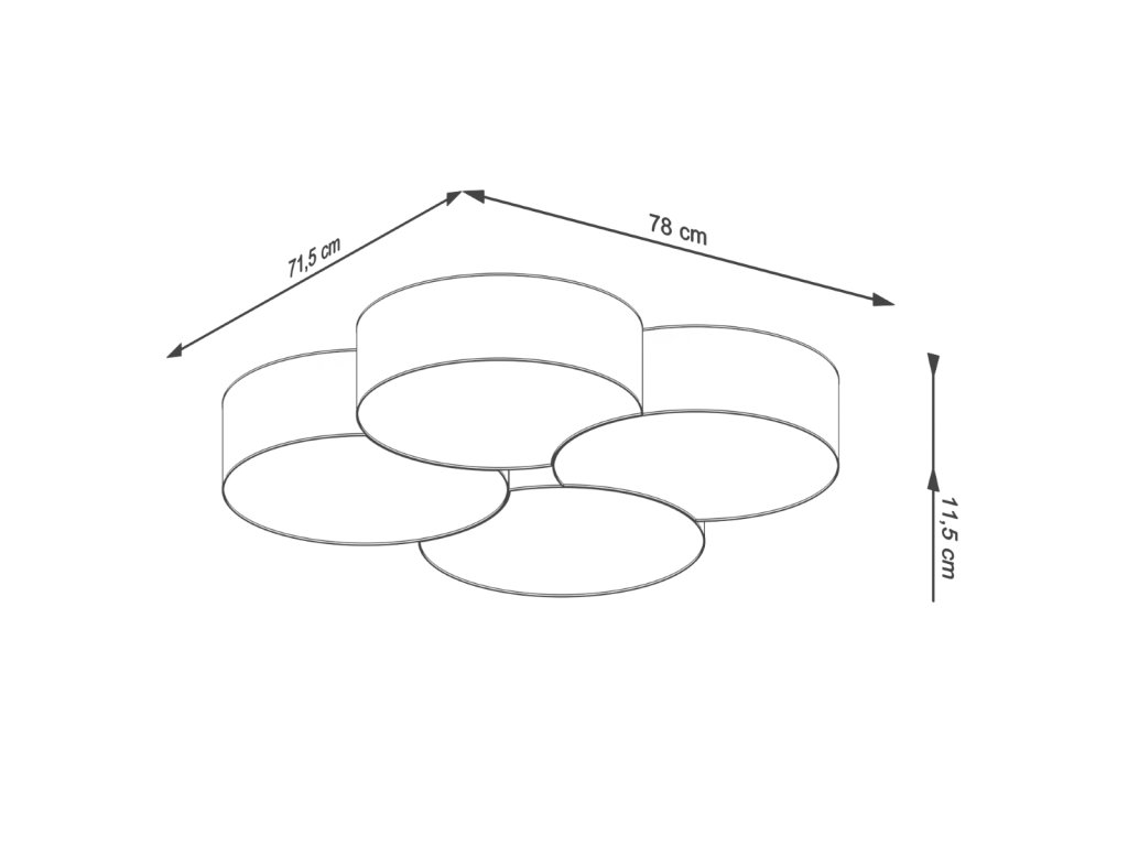 Stropné svietidlo CIRCLE 4 biela využíva päticu E27, ktorá umožňuje pripojenie žiarovky s maximálnym príkonom 60 W. S jeho výškou 11,5 cm a rozmermi 71,5 cm x 78 cm bude perfektne pasovať na každý strop.
